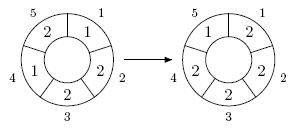 简单对比细胞自动机是指一群处在一个个有特定排列方式的格子中的细胞,它们随着离散的时间演变,每一次演变中,每个细胞都遵循一系列规则,这些规则描述了细胞的新状态和原先周围细胞状态间的关系。细胞自动机的阶数是它包含的细胞个数。这些细胞被命名为1~n。