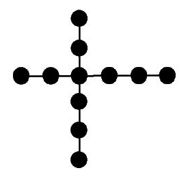 另有 $5\%$ 的数据:$n \leq 10^5,Q \leq 10^5$,这个树的结构是一个十字(即两条链通过一个公共点相交,例子见下图);