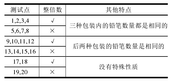 上表中“整倍数”的意义为:若为“√”,表示对应数据所需要的铅笔数量n一定是每种包装铅笔数量的整倍数(这意味着一定可以不用多买铅笔)。