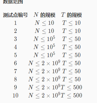 每个测试点包含多组数据,输入文件的第一行是一个正整数 T,表示数据的组数。注意各组数据之间是独立无关的。