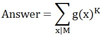 现在给出一个数M,求出所有M的约数x的g(x)的K次方和。