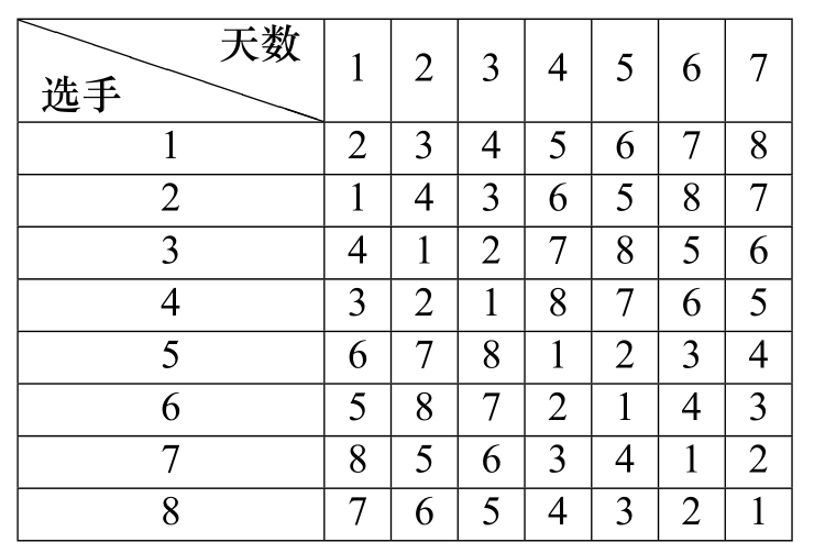 请按此要求将比赛日程表设计成有$n$行和$n-1$列的一个表。
