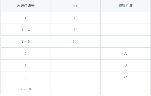 对于 100% 的数据,2 ⩽ n ⩽ 6000, 0 ⩽ r_i ⩽ n-1。