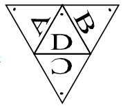 四个这样的边长为n的正三角形可以组成一个三棱锥。我们将正三棱锥的三个侧面依顺时针次序(从顶向底视角)编号为A, B, C,底面编号为D。侧面的A, B, C号三角形以三棱锥的顶点为顶,底面的D号三角形以它与A,B三角形的交点为顶。左图为三棱锥展开后的平面图,每个面上标有圆点的是该面的顶,该图中侧面A, B, C分别向纸内方向折叠即可还原成三棱锥。我们把这A,B、C、D四个面各自划分成n2个单位三角形。