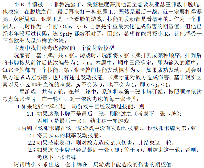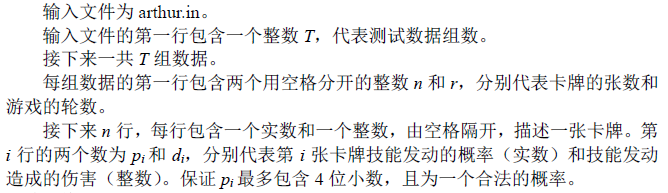 | 题目名称 | 1956. [HNOI 2015]亚瑟王 |