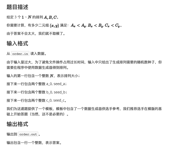 // 使用方法:从输入文件读入 N 和随机数种子之后,调用 gen_data 方法,可以将获得的排列 {A}, {B}, {C} 分别存放在对应 3 个数组中