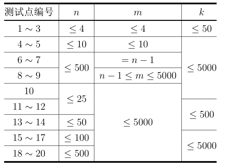 每个测试点的具体限制见下表:
