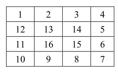 下图是一个 $n = 4$ 时的螺旋矩阵。