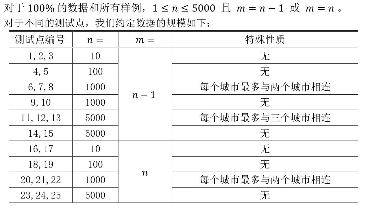 见目录下的 travel/travel3.in 和 travel/travel3.ans。这组样例满足$m=n-1$ 。