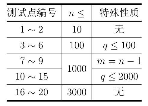 对于所有测试数据:$1\leq n\leq 3000,1\leq m\leq 2\times n, 1\leq q\leq 2\times 10^4$。