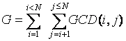 $G=\sum\limits_{i\in [1,N)}\sum\limits_{j\in[i+1,N]} \gcd(i,j)$