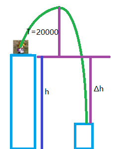 跳到了高度比当前高20000的地方(这意味着她的身体可以承受把她自己送到更高的20000高度的高空产生的反冲力)