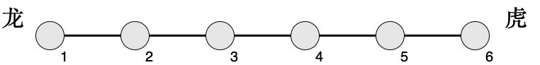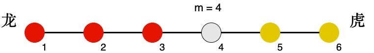 下面图2为n=6,m=4的示例,其中红色为龙方,黄色为虎方: