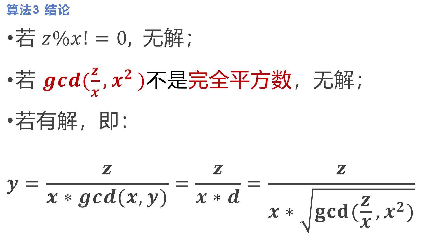 首先,将题目中同余式化为 $ax + by = c$ 的形式: 1. 移项,得 $(x - y) + t(m - n) \equiv 0 \pmod L$,即 $L \mid (x - y) + t(m - n)$ 2. 设 $pL = (x - y) + t(m - n)$,整理,得 $pL + t(n - m) = (x - y)$ 该方程有解当且仅当 $(L, n - m) \mid (x - y)$ 就求出了方程 $pL + t(n - m) = (L, n - m)$ 的特解 $p_0, t_0$。 得到该方程的通解为 $p = \frac{x - y}{d}p_0 + k\frac{n - m}{d}, \quad t = \frac{x - y}{d}t_0 - k\frac{L}{d} \enspace (k \in \mathbb{Z}, \enspace d = (L, n - m))$ 最后,对通解进行一些调整,就得到了最小整数解