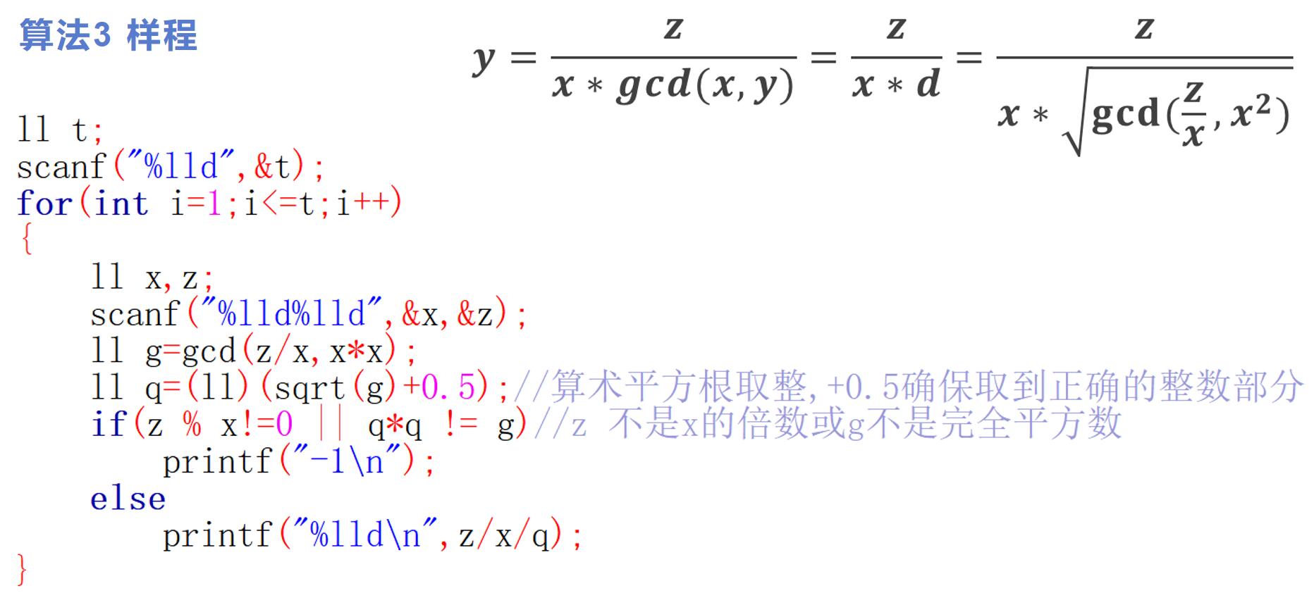 给我自己的博客打个广告,关于莫比乌斯反演和整除分块上面有详细的讲解。 首先,我们求简化版问题:求 $\displaystyle{\sum_{i = 1}^n\sum_{j = 1}^m[(i, j) = 1]}$。 利用 莫比乌斯反演 + 整除分块 我们可以用 $O(\sqrt n)$ 的时间复杂度求解。 注意到,$[(i, j) = 1] = \varepsilon((i, j)) = \sum_{d \mid (i, j)}\mu(d)$。因此该题等价于求 $\displaystyle{\sum_{i = 1}^n \sum_{j = 1}^m \sum_{d \mid (i, j)}\mu(d)}$ 交换求和顺序,有 $\displaystyle{\sum_{d = 1}\mu(d)\sum_{i = 1}^n[d \mid i]\sum_{j = 1}^m[d \mid j]}$ 注意到,$1 \sim n$ 中 $d$ 的倍数有 $\lfloor \frac{n}{d} \rfloor$ 个,因此 $\sum_{i = 1}^n[d \mid i] = \lfloor \frac{n}{d} \rfloor$,因此有 $\displaystyle{\sum_{d = 1}^{\min(n, m)} \mu(d) \lfloor \frac{n}{d} \rfloor \lfloor \frac{m}{d} \rfloor}$ 接下来,就可以用 整除分块 来求解了。